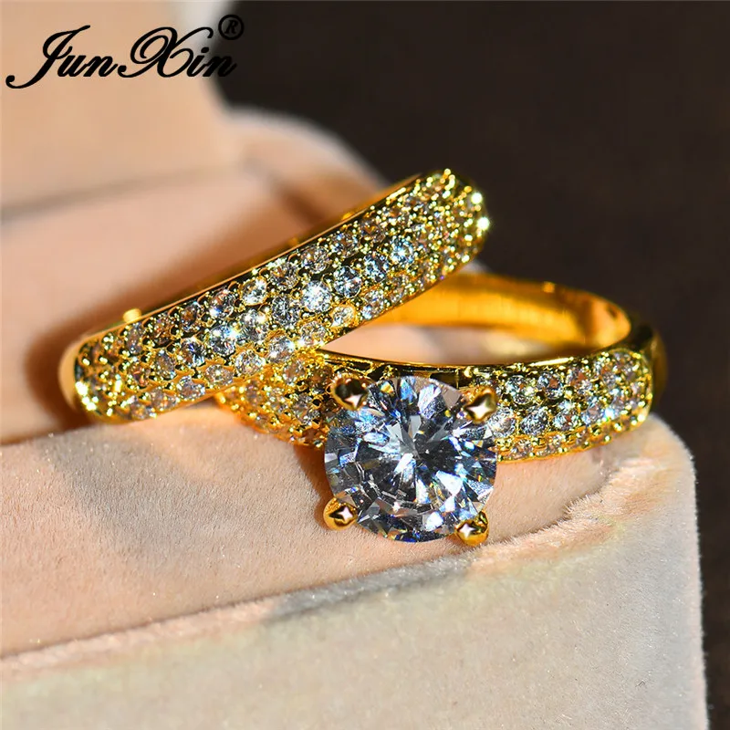 Us 5 24 79 Off Junxin Bride Engagement Couple Ring Set 925 Silver Yellow Gold Color Round Zircon Promise Wedding Rings For Women Men Jewelry In