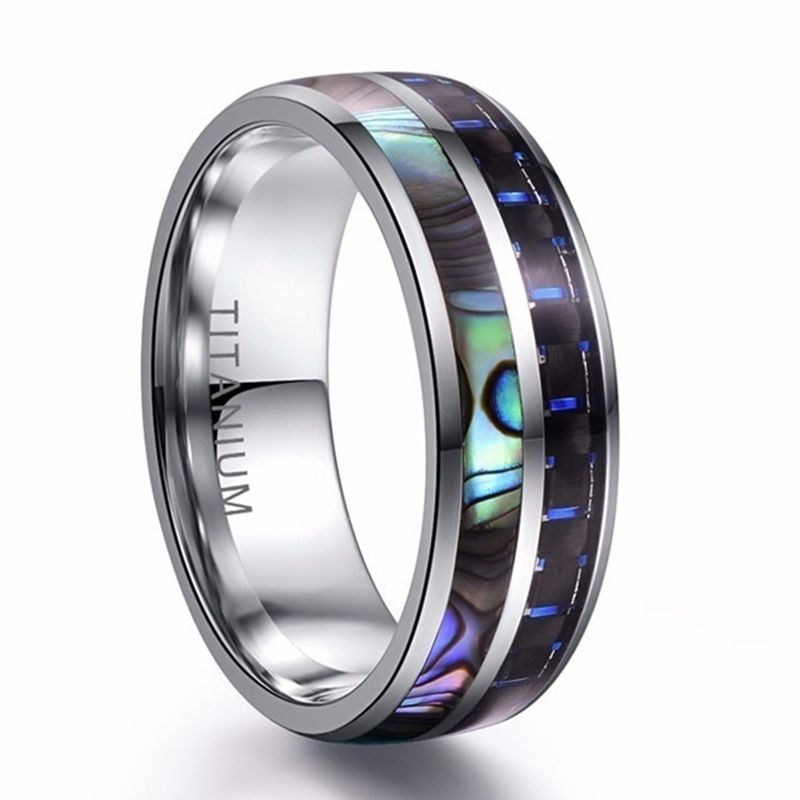 Men S Titanium Wedding Ring With Blue Fishing Wire Inlay