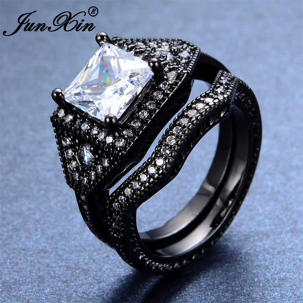 Us 8 99 Junxin Fashion Female Geometric Ring Set Black Gold Filled Jewelry Vintage Wedding Rings For Women Bridal Sets Best Friend Gift In Rings