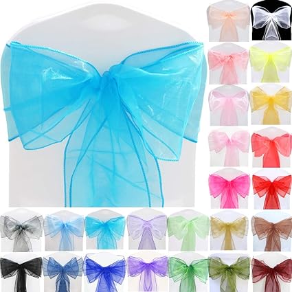 Tts Aqua Organza Sashes Wider Sash Fuller Bows Chair Cover Bows Sash For Wedding Party Birthday Decoration