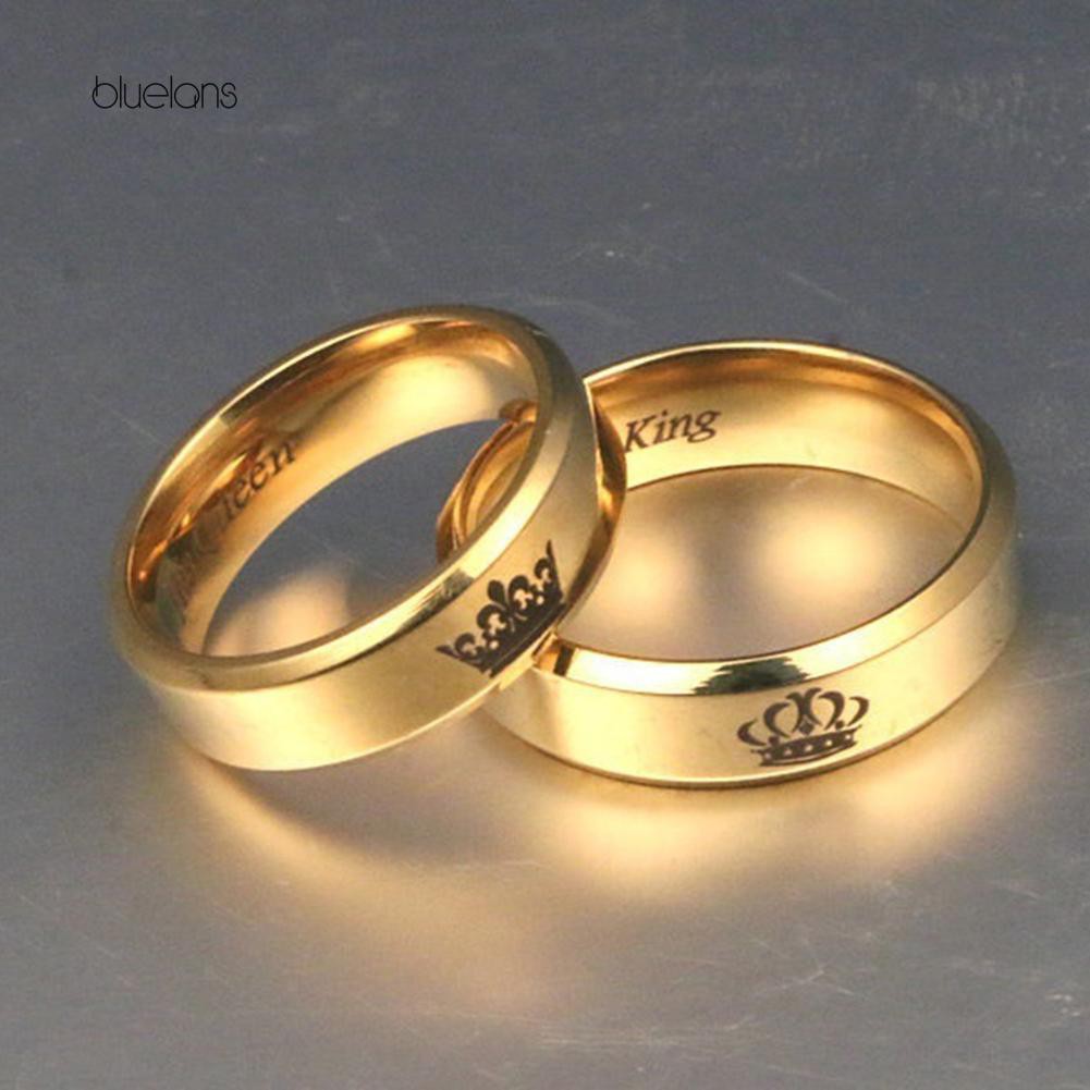 Bluelans His Queen And Her King Titanium Steel Couple Ring Lovers Romantic Gift Jewelry