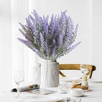 Yinhua 8 Bundles Artificial Lavender Bouquet Fake Purple Flower With Green Leaves Home Party Wedding Decorations