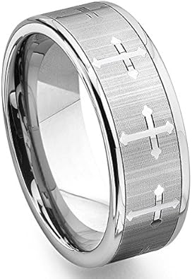 Tungsten Men S Wedding Band Ring 7 5mm With Cross Design Size 7 13