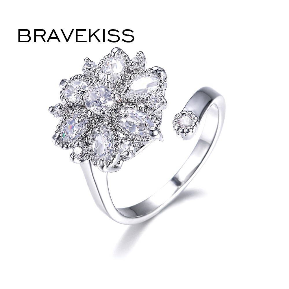 Bravekiss Adjustable Curve Flower Design Cz Diamond Finger Rings Open Cocktail Rings Jewelry Gift